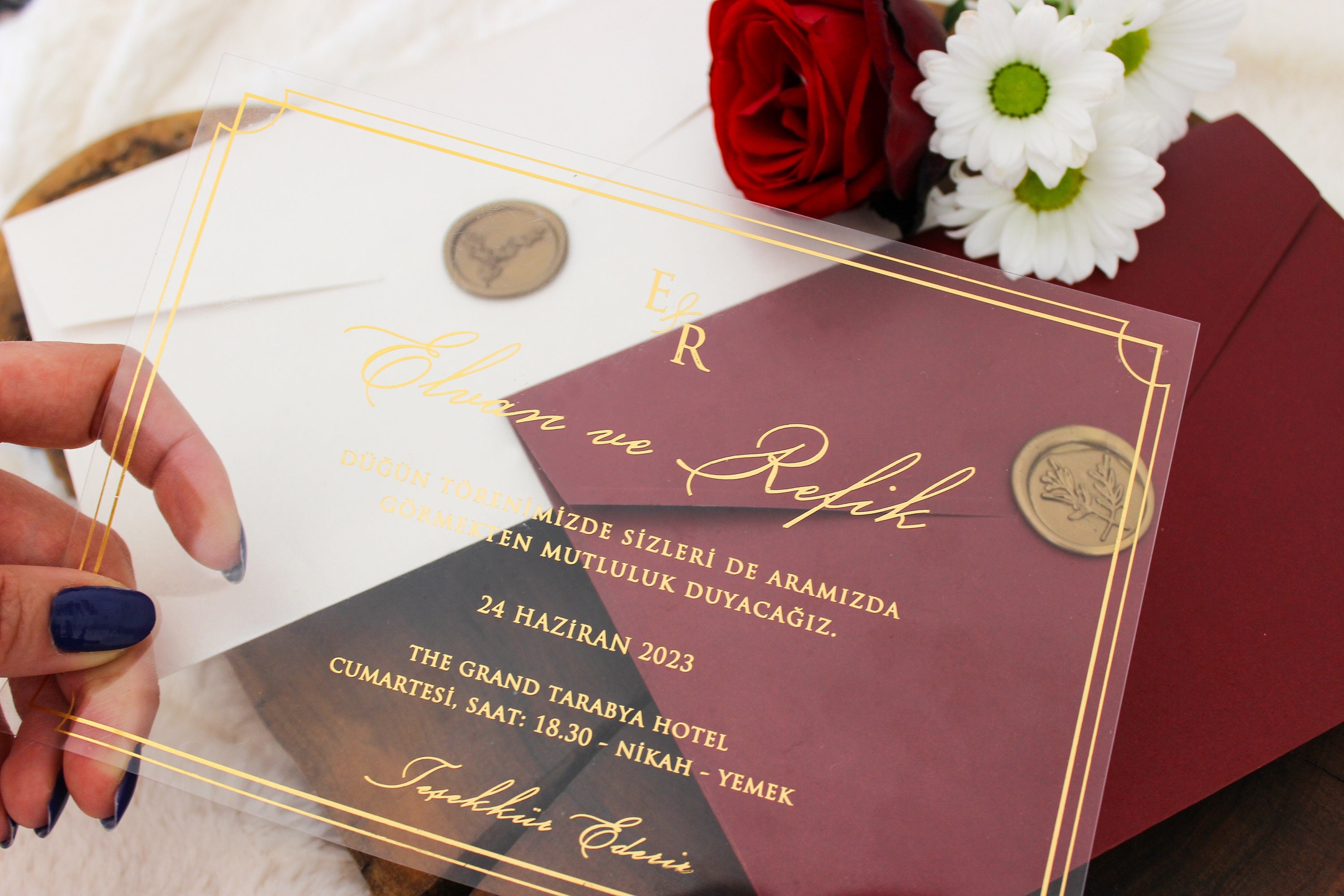 Buy Acrylic Wedding Invitation Gold Foil Invites Burgundy Online In India Etsy